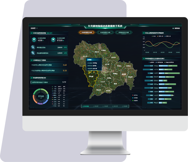 提供補充耕地和占用耕地數據的動態管理,包括指標數據統計、圖斑分布情況及耕地指標及耕地指標掛鉤分布情況